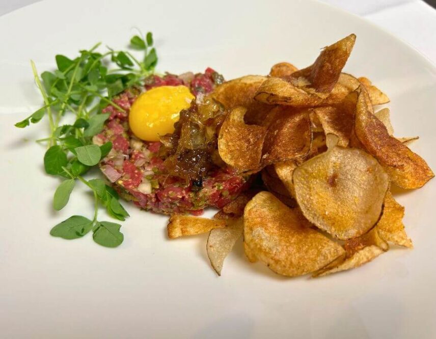 Discover the art of Steak Tartare, meticulously prepared by Executive Chef JP Comte at Noble Restaurant. The dish is a testament to culinary precision, featuring premium beef mixed with finely chopped herbs and spices, offering a taste experience that is both sophisticated and satisfying. Indulge your tastebuds with our exquisite steak tartare, a culinary delight that transcends ordinary dining.