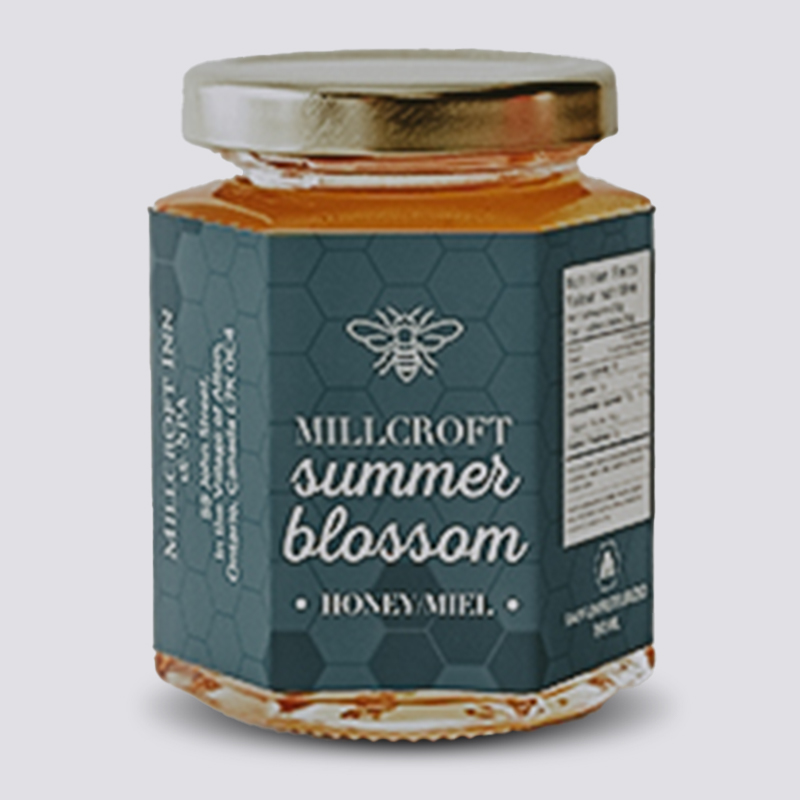 The colour and flavour of our sustainable honey varies depending on the season it is produced in due to the different nectar available to the bees. The honey is kept raw and unpasteurized ensuring its natural health benefits remain intact. Honey from Millcroft Inn & Spa can be purchased at the front desk or at the Spa reception desk and makes a perfect souvenir or gift! Small $9.95 or Large $14.95.